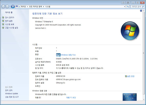 Windows XP의 경우 [내컴퓨터]를 오른쪽 버튼으로 클릭하고 → [관리]를 클릭한 다음 → [컴퓨터 관리(로컬)]를 오른쪽 버튼으로 클릭한 후 → [속성]을 클릭하고 → [컴퓨터 이름] 시트에서 컴퓨터 이름을 확인합니다.