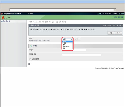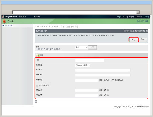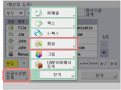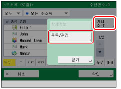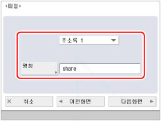 터치 패널 화면 및 리모트 UI를 사용하여 이 절차를 수행할 수 있습니다. 리모트 UI를 사용하여 간편하게 수신인을 등록할 수 있습니다.