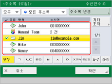 등록한 수신인을 선택하고 → [확인]을 누릅니다.