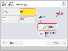[PDF]를 선택하고 → [상세설정]을 누릅니다.