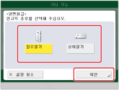 [양면 원고]를 누르고 → 양면 원고의 종류를 지정한 다음 → [확인]을 누릅니다.