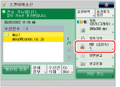 PDF 파일에 비밀번호를 설정할 수 있습니다. PDF 파일이 비밀번호로 암호화된 경우 올바른 비밀번호를 입력하지 않으면 PDF 파일을 열거나 인쇄 또는 변경할 수 없습니다. 액세스를 제한하려면 송신하기 전에 비밀번호를 설정하는 것이 좋습니다. 자세한 내용은