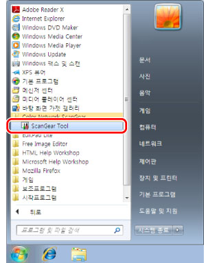 ][시작] → [모든 프로그램] → [Color Network ScanGear] → [ScanGear Tool]을 클릭합니다.