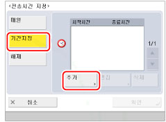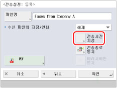 [전송시간 지정]을 누르고 → 전송 조건이 유효한 시간 및 요일을 지정합니다.