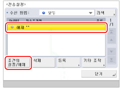 등록한 전송 조건을 선택하고 → [조건의 설정/해제]를 누릅니다.