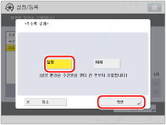 [설정]을 선택하고 → [확인]을 누릅니다.