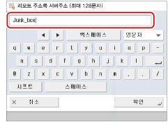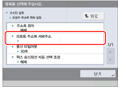 (설정/등록) → [수신인 설정] → [리모트 주소록 취득 설정] → [리모트 주소록 서버주소]를 누릅니다.