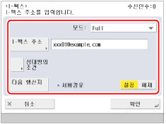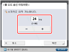 (설정/등록) → [기능 설정] → [송신] → [이메일/I-팩스 설정] → [풀 모드 송신 타임아웃]을 누릅니다.