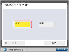 (설정/등록) → [기능 설정] → [송신] → [이메일/I-팩스 설정] → [MDN/DSN 수신시 인쇄]를 누릅니다.