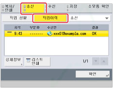 (설정/등록) → [기능 설정] → [송신] → [공통 설정] → [송신결과 리포트]를 눌러 송신 결과를 확인할 수도 있습니다.|