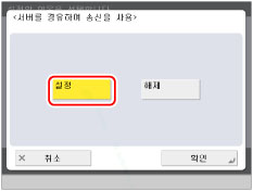 (설정/등록) → [기능 설정] → [송신] → [이메일/I-팩스 설정] → [서버를 경유하여 송신을 사용]을 누릅니다.