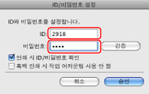 [ID/비밀번호 설정] 대화 상자가 표시됩니다.