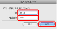 [ID/비밀번호 설정] 대화 상자에서 → "기기 설정"의 4단계에서 등록한 ID 및 비밀번호를 입력합니다.