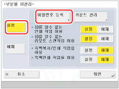 (설정/등록) → [관리 설정] → [사용자 관리] → [부문별 ID 관리]를 누릅니다.