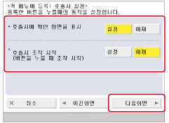 설정을 확인하고 → [다음화면]을 누릅니다.