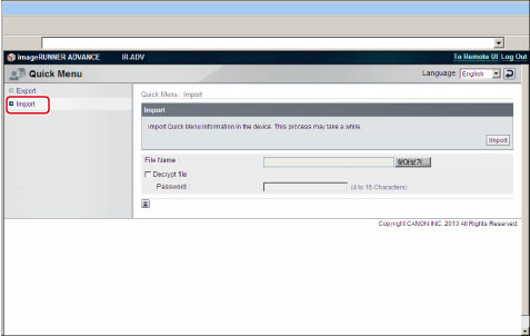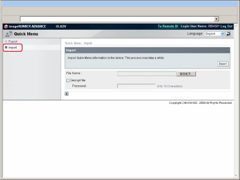 [가져오기]를 클릭하여 가져오기 페이지를 표시합니다.