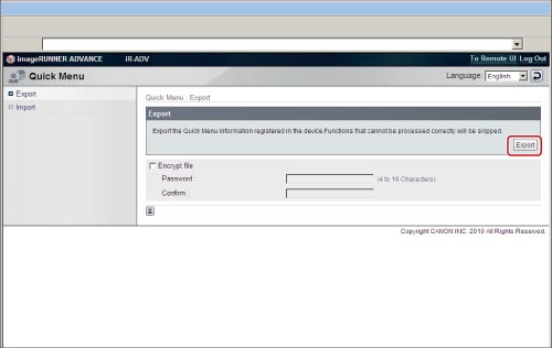[내보내기]를 클릭하여 내보내기 페이지를 표시합니다.
