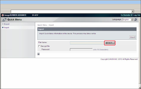 설정을 가져온 기기에서 [퀵 메뉴]를 누르고 → 등록된 설정을 포함하는 버튼을 누릅니다.