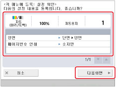 등록할 버튼을 선택하고 → [다음화면]을 누릅니다.