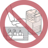 이 기기가 연결되어 있는 전원 콘센트에 다른 전기 장치 플러그를 함께 연결하지 마십시오.