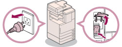 연기나 이상한 소음이 나면 즉시 주전원 스위치를 끄고 전원 콘센트에서 전원 코드를 분리한 후 가까운 Canon 공인 대리점에 문의하십시오. 이러한 상태에서 기기를 계속 사용하면 화재가 발생하거나 사용자가 감전될 수 있습니다. 또한, 필요할 때 언제든지 기기 전원 플러그를 뽑을 수 있도록 플러그 주변에 물체를 놓지 마십시오.