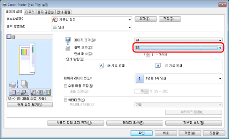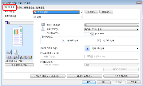 화면은 운영 체제와 프린터 드라이버의 종류 및 버전에 따라 다를 수 있습니다.