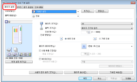 프린터 드라이버 화면을 표시하는 방법에 대한 자세한 내용은 "인쇄" 또는 "기본 인쇄 설정 구성"을 참고하십시오.