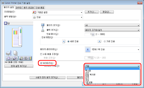 화면은 운영 체제와 프린터 드라이버의 종류 및 버전에 따라 다를 수 있습니다.