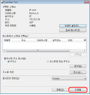 ScanGear Tool은 Color Network ScanGear/Network ScanGear와 동시에 시작할 수 없습니다.