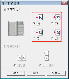 [급지 방향]에서 피더에 보급할 원고 방향을 선택합니다.