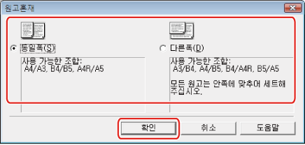 해당하는 원고 크기 조합을 선택하고 → [확인]을 클릭합니다.