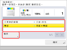 可以使用「設定確認」螢幕確認、變更或取消所選影印模式。