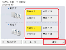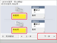若為封面頁和/或封底頁選擇[保留空白],則本機器從在步驟3中所選的紙張來源插入一頁紙,作為封面頁和/或封底頁。