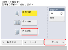 只能為觸控面板顯示螢幕上顯示的原稿紙張尺寸設定「書本消框」模式。