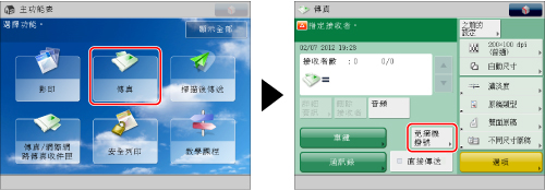 (數字鍵)輸入接收者傳真號碼→在呼叫應答並且聽到傳真資訊服務的錄音訊息時,按[音頻]。