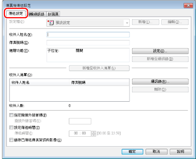 如果您在[特殊選項]頁的[安全設定]對話方塊中選擇了[將收件人新增至 [收件人清單] 前,請先重新輸入傳真號碼],那麼按下[新增至收件人清單]時會顯示[確認收件人]對話方塊。有關詳細資訊,請參閱連線說明(請參閱「