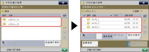 若資料夾中儲存了兩個或更多個檔案,可以按[名稱]或[日期/時間]對檔案清單進行排序。