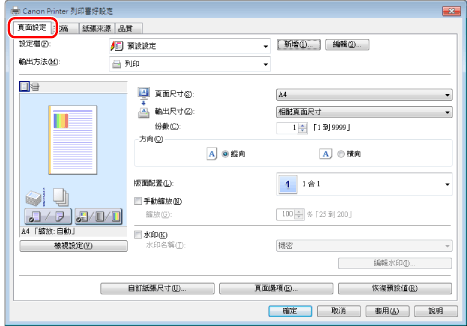 根據作業系統以及印表機驅動程式的類型和版本,顯示可能有所不同。