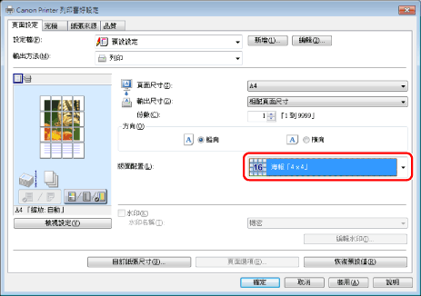 從[版面配置]選擇[海報「N×N」](N=2、3或4)。