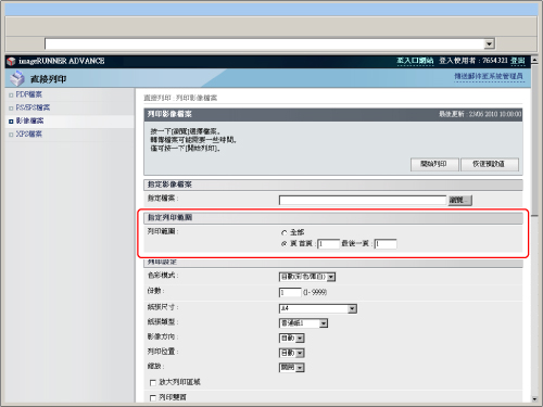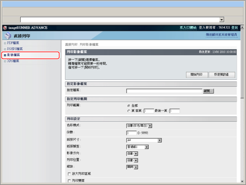 要透過指定URL進行列印,必須將「設定/註冊」的 [管理設定]下[遠端使用者介面]中的[使用參考列印]設定為「開啟」。