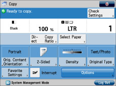 If [Department ID Management] or [Limit Functions] for [Department ID Management] is set to 'On', the startup screen may differ from the screen set to be displayed as default at startup.