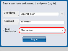 If Local Device Authentication is set as the user authentication system, only [This device] is displayed in the <Login Destination> drop-down list.