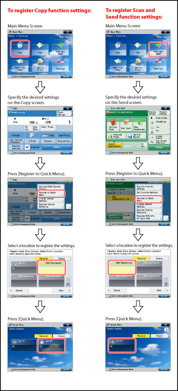 For instructions on registering a Personal button/Shared button, see the explanation using the Scan and Send function as an example in "Registering a Personal Button/Shared Button."