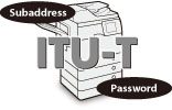 This machine's fax function is compatible with ITU-T (International Telecommunication Union - Telecommunication Standardization Sector) standard subaddress features. If the remote party's fax machine supports subaddress fax transmissions, you can send or receive documents with increased security by attaching a subaddress and a password to all of your fax transactions.