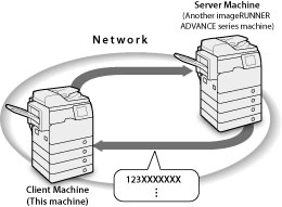 The machine can access a server machine on the network as a client machine to search for/specify destinations from the Address Book of the server machine.