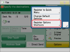 Press [Register Options Shortcuts].
