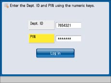 Enter a Department ID/PIN or System Manager ID/System Manager PIN to log in to the Remote UI or a MEAP application (including login applications).