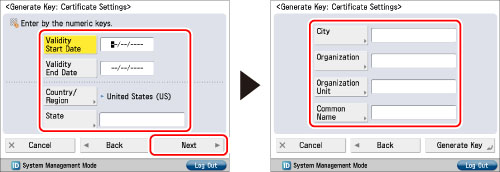 After pressing [Generate Key], you cannot use any of the keys until a key pair has been generated and registered.