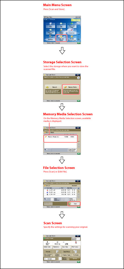 For instructions on arranging folders, checking detailed information for the file, and editing/deleting files, see "Access Stored Files."
