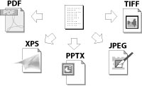 You can send documents in a variety of file formats, including PDF, XPS, OOXML(pptx), JPEG, and TIFF. This gives you the freedom to send documents in the manner best suited to the purpose of the document, as well as the recipient's document handling environment.
